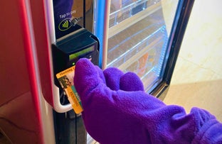Open the door and take what you need — snacks, drinks, or late-night essentials. The machine tracks your selections automatically.
